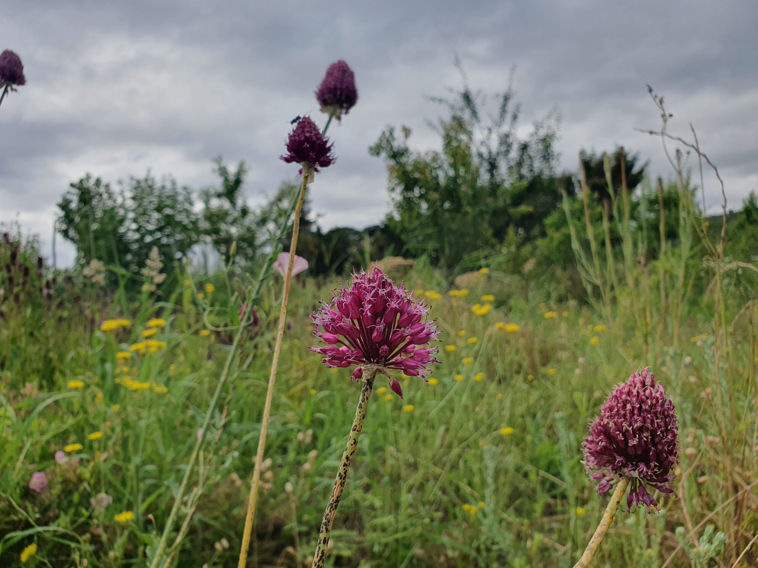 Avec ses inflorescences ovoïdes pourpre-bordeaux très graphiques, cet ail apporte un coté sauvage et élégant, il se marie bien avec des achillée et graminées